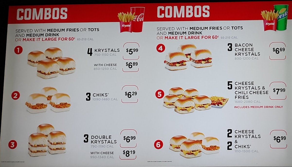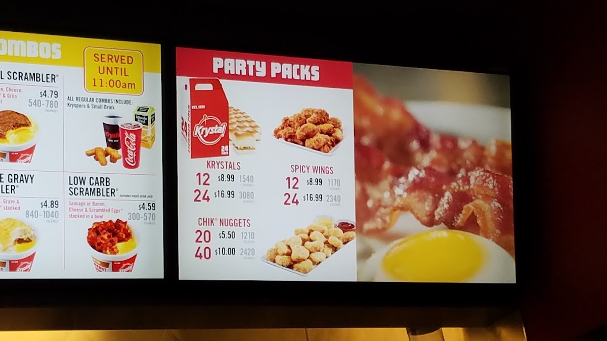Krystal serves up classic American fast food with a focus on sliders, chicken, and breakfast favorites. The standout Original Krystal slider, a crisp, bite-sized burger layered with diced onions, mustard, and dill pickle on a signature steamed bun, is a flavorful icon starting at just $1.39. Cheese lovers can indulge in the Cheese Krystal, while bacon adds a savory twist to fan favorites.